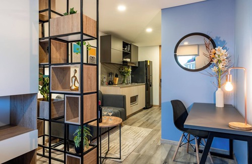 Tendrás a tu disposición un acogedor Loft que cuenta con aproximadamente 26 metros (86 pies) de espacio y cuenta con todo lo necesario para una estadía cómoda, desde una cocina completamente dotada hasta una cama con lencería de excelente calidad, estarás en el corazón de la Zona T dónde encontrarás todo tipo de restaurantes, bares y discotecas para disfrutar de toda la vida nocturna de Bogotá, además estarás cerca de los más exclusivos centros comerciales y tiendas de la ciudad, una combinación perfecta para disfrutar de la ciudad.