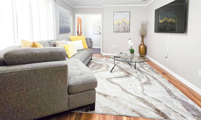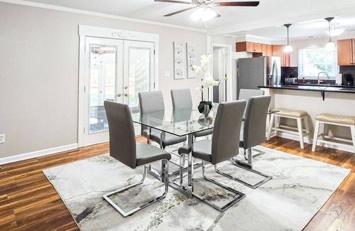 Relax in this stylish Matthews getaway featuring 1 king and 2 queen beds, perfect for families or small groups. Enjoy a spacious layout with cozy living areas, a fully stocked kitchen, and a screened-in porch ideal for morning coffee or evening chats. Located in a quiet, central area of historic Matthews, you're just minutes from local dining, coffee shops, parks, and more. Fast Wi-Fi, smart TVs, and all the comforts of home included.