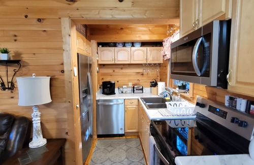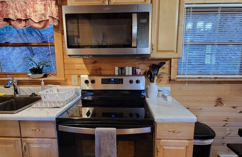 The master bedroom is on the 1st floor with a queen bed, full bath (double sinks), ceiling fan and a small flat screen TV. The kitchen is also on the 1st floor, fully stocked with dishes, silverware, pots/pans, coffee maker, blender and more. The family room has a flat screen TV with cable/wifi, wireless internet, a propane wood stove and a ceiling fan. Upstairs is the 2nd bedroom with a queen bed and ceiling fan. There is a full bath (double sinks) in the hallway. The 3rd bedroom has 2 twin beds and a half bath.
