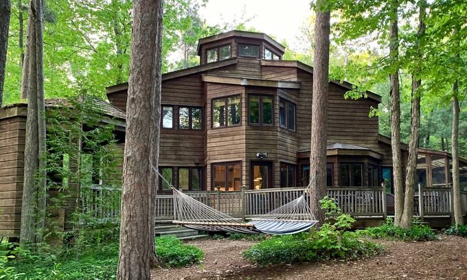 Maplewood lakehouse was architecturally designed to capture the beauty of the surrounding Carolinian forest. The all-cedar walls exude the warmth of natural wood and give a lodge-like feel with a modern, minimalist twist. It is nestled in the beautiful and quiet community of Southcott Pines in Grand Bend. To experience one of Ontario's finest beaches you need only to walk three minutes to a private beach on the sandy Lake Huron shoreline.
