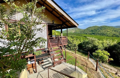Situated on a mountainside, this pet-friendly cabin offers an immersive experience in nature and is just a short two-minute stair climb from the street. Wake up to beautiful sunrises and enjoy stunning mountain and water views. Relax on the balcony, where the cheerful songs of birds fill the air, and the occasional appearance of a friendly gecko adds to the charm. It's a place where you can truly connect with the outdoors.