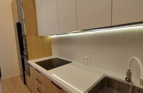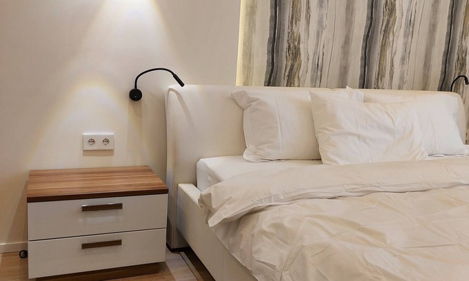 All brand new household appliances, wardrobe, comfortable multi-level lighting, blackout curtains for sleeping, high-quality materials.