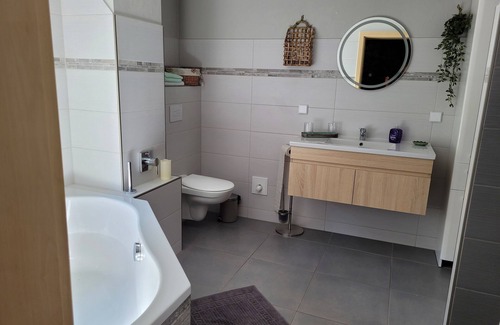 Cozy newly built vacation apartment in quiet wooded surroundings is located in Schmiedeberg. Cozy newly built vacation apartment in quiet wooded surroundings provides accommodation, featuring Pet Friendly, Security/Safety, Bedding/Linens, among other amenities. This Apartment features Pet Friendly, Security/Safety, Bedding/Linens, to make your stay a comfortable one.