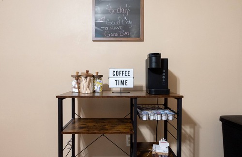 The fully equipped kitchen has everything you need to prepare meals during your stay, including a refrigerator, stove, oven, microwave, coffee maker, and all necessary cookware and utensils. We also provide complimentary coffee and tea.
