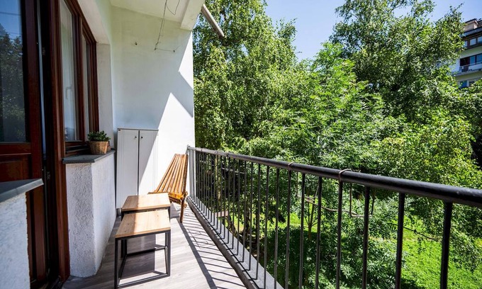After a long day of exploring our hometown, relax and unwind on the cozy balcony, overlooking green building backyard.