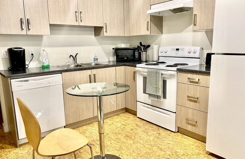 Brand new stunning modern condo suite is perfect for anyone looking for a private suite with all the amenities. Private parking in front of the suite door. Very comfortable with in-floor heat. This is truly your home away from home.