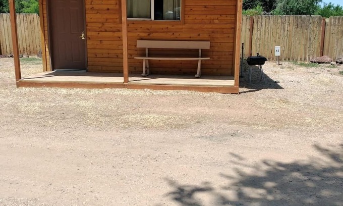 Get ready to relax in this superb 1-room cabin in Fillmore. This cozy retreat features 1 queen bed, 1 futon with double bed on the bottom, and a twin bed on top, perfect for a small group of guests, sleeps up to 5. Pet friendly, With heating and AC, you'll stay comfortable no matter the season. Kitchenet includes sink, microwave, fridge, and hot plate. Located in the Wagons West RV Park, there's coin laundry and shower facilities available for your convenience. (Cabin does not have a shower or tub). Fall in love with Fillmore and enjoy the magic Millard county has to offer, Come Ride you ATV's, hike, hunt, Rock hound, explore Utah's National Parks, or just enjoy a convenient stop along I-15 in Central Utah.