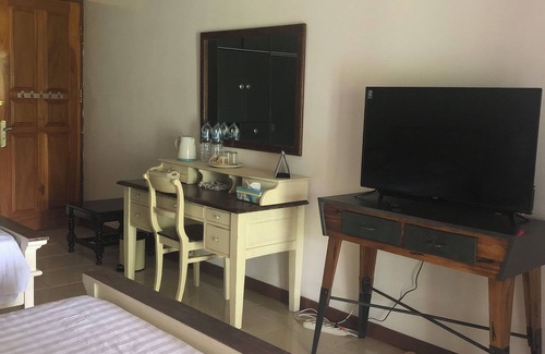 The place is easy to find, close to downtown, It’s peaceful, fresh environment, volcano Lokon view. Many Resto & Cafe around. And separate access to the room and patio to seat outside and listen to the birds singing.