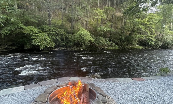 Cozy Poconos retreat directly on Bushkill Creek w/firepit & wood pellet stove! | Ski Chalet in East Stroudsburg