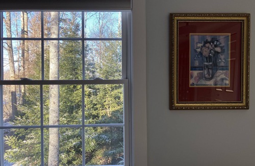 Sit on the private deck with a charming view of the woods. Wildlife sightings include deer, bobcat, turkeys, hawks and many songbirds. It's not uncommon to hear barred owls calling at night. The property is well maintained, quiet and private.