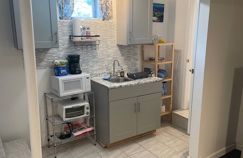 ● Small Kitchenette: The apartment comes with a small kitchen equipped with a microwave, toaster oven, fridge, and coffee maker. Perfect for a quick breakfast or snack.