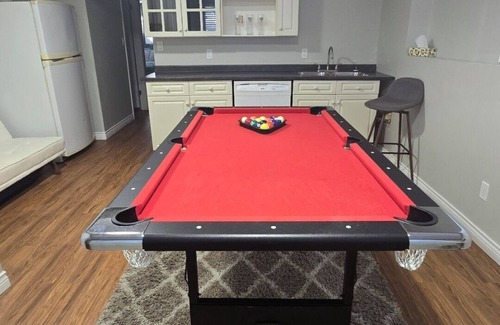 Welcome to your home away from home! Nestled on a quiet street in West Lethbridge, this spacious 4-bedroom residence offers a comfortable and convenient stay for up to 10 guests. Perfect for family reunions, friend getaways, or corporate travel, this home boasts ample space both indoors and out. Inside, you'll find two inviting living areas provide plentyt of room to relax and unwind. Cook up delicious meals in the fully equipped kitchen, complete with modern appliances and ample counter space. We offer Four well-appointed bedrooms equipped with high quality, 100% cotton linens. arrangements with 6 beds to accommodate a large group. Enjoy a friendly game of pool in the finished basement. This property offers a private, fenced, backyard featuring a small playground for the little ones.