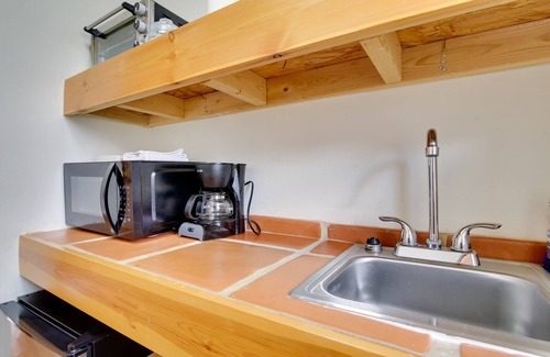 KITCHENETTE: Toaster oven, microwave, mini fridge, dishware/flatware, drip coffee maker