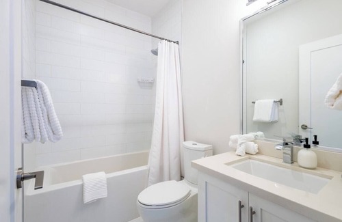 Soak away your troubles in the welcoming full bathroom with fresh towels and essential toiletries to ensure maximum comfort and convenience.