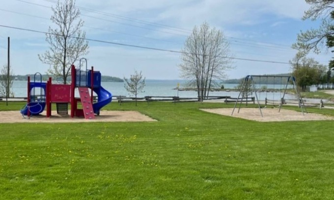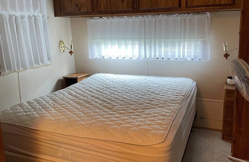 Relax with the whole family on the shores of Lake Mindemoya at Idyll Glen RV Park, in the heart of Manitoulin Island. Manitoulin Island is the largest freshwater island in the world and is virtually mosquito-free. Our rental has two bedrooms, large living room, fully equipped kitchen, washroom/shower, satellite TV, propane BBQ , firepit, A/C and is overlooking the lake. Laundry facilities available on site, sauna, horse shoe pits, children's play area, candy/ice cream store, beautiful sandy beach, boat launching and docking available. Bedding, pillows, blankets, toiletries and towels are not included.