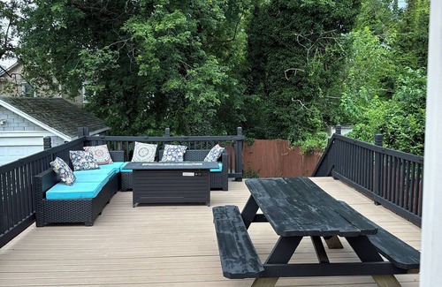 Guests have full access to 3 bedrooms, bathrooms, the kitchen, basement, porches, decks, and a private yard.