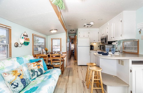 This awesome waterfront RV cottage getaway is just what beach vacation dreams are made of. Perfect for the smaller family, highlighting the privacy of a personal home, with complete access to all Sandbridge offers. It sleeps four comfortably with one bedroom, a full pull-out couch, a futon,