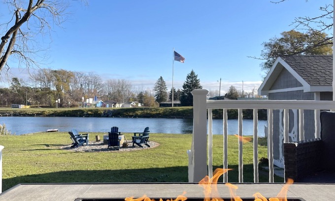 Welcome to the River Sweet Cottage located along the banks of the AuSable River in the heart of downtown Oscoda, MI. Our newly renovated cozy 2bdrm, 1 bath cottage is just a short distance from the beautiful beaches of Lake Huron. The River Sweet Cottage is a fully equipped, and well-maintained home with all the amenities to provide a memorable vacation. Coastal inspired décor surrounds you inside and out at the River Sweet cottage. New furniture, mattresses, tv’s, heat/AC, bathroom linens and bedding all provided. The comfort extends to the large partially covered deck with new furnishings, a large gas fire table to snuggle up too on the cooler evenings, solar lighting, gas grill and a picnic table. Boat parking is available along the seawall. For strong swimmers snorkeling is amazing right outside the cottage. With crystal clear water you can usually spot a fish or two swimming around. Check out unique shops, delicious restaurants, ice cream shops, and the beautiful downtown beach all within walking distance of the River Sweet cottage. Grab a book, challenge each other at a board game, explore our trails and parks or go outside for some cornhole! Local and state Snowmobile/ATV trails accessible from home. Looking for more space for larger groups? Book both The River Sweet Cottage and The River House @ 102 (#4944684) located next door! Enjoy the river rippling by, catch some fish along the mighty AuSable River or take in a nice fire from the spacious yard along the river's edge. Whichever way you RELAX, the River Sweet has you covered!
