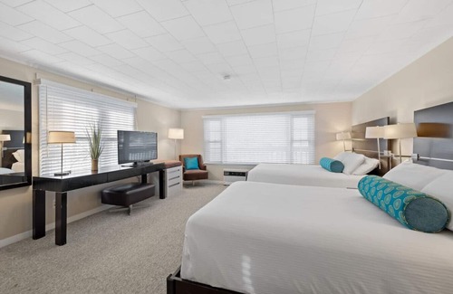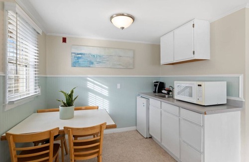 Stay steps from the ocean in this inviting hotel room with 2 double beds, a handy kitchenette, and access to a shared deck with partial ocean views. Enjoy peaceful courtyard vibes with coastal charm. Ideal for couples, families, or solo travelers, this space offers comfort, prime beachside location near shops and attractions, plus a standout oceanfront restaurant for fresh coastal dining.. Perfect for those looking to unwind by the sea.