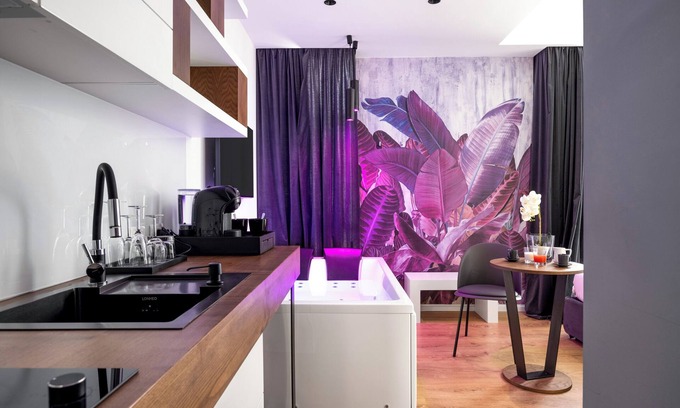 This room is equipped with a whirlpool bath and an equipped kitchenette.