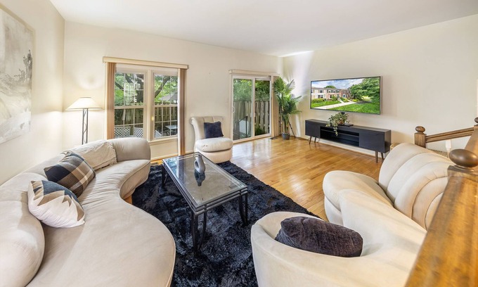 Spacious 4-bedroom, 3.5-bath home comfortably sleeps up to 10 guests, perfect for families, groups, and corporate travelers. Enjoy high-speed Wi-Fi, a dedicated workspace, free parking, and a fully equipped kitchen. Relax in an open, family-friendly layout with plenty of room to connect. Located in a safe, quiet neighborhood just 20 minutes from DC, with easy access to attractions and business hubs — offering unmatched comfort, privacy, and convenience for your stay.