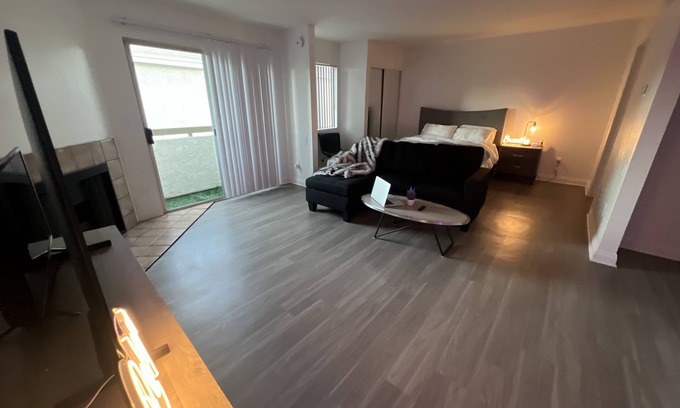 Welcome to your cozy, healing apartment in the heart of Sherman Oaks! This charming studio anpartment offers everything you need for a relaxing and comfortable stay. You'll love the spacious living room with a fireplace, all new appliances in the kitchen with a breakfast bar, and the private balcony. The bedroom features a queen-sized bed, a sliding door mirrored closet, and an en-suite bathroom with a tub and shower. The apartment also comes with free Wi-Fi, cable TV, central air conditioning, and a home gym. There is a coin operated washer and dryer in the building. You'll have access to the shared pool, hot tub, and barbecue area, as well as a reserved parking spot. The location is ideal, as you'll be within walking distance of shops, restaurants, cafes, and parks. You'll also be close to major attractions like Universal Studios, Hollywood, and Beverly Hills. Whether you're here for work or play, this cozy, healing apartment is the perfect place to call home!