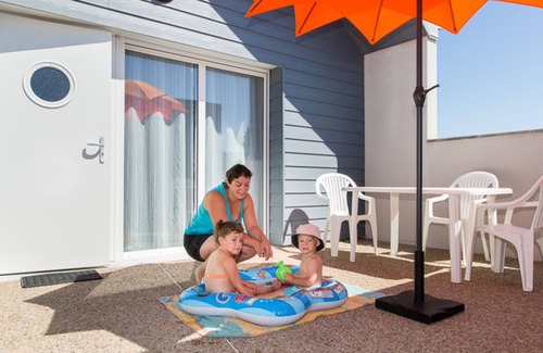 Semi-detached single-story house (disabled access). Living room (sofa bed, TV) with kitchenette. 1 bedroom (2 single beds). Shower room with toilet. Sheets and towels are available for hire. Cleaning service charged by the hour at an additional cost. Wi-Fi access. Electric heating included. Private terrace. Garden furniture. Barbecue. Private shelter. Parking. Laundry service available on site (€18 package for 1 wash and 1 dry). 600m from the beach, the sea and the tides will truly punctuate your stay! A renowned surfing and windsurfing destination (surf center), it's also a magnificent hiking area. Shops nearby. Village of 15 adjoining gîtes. Reception hall.
