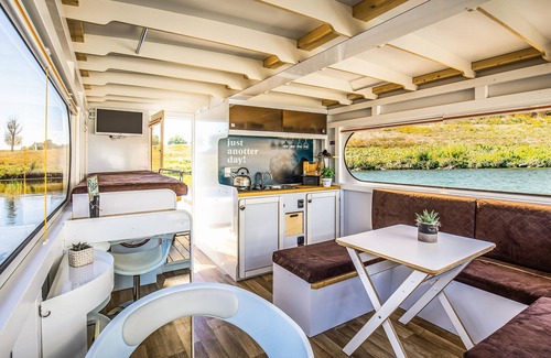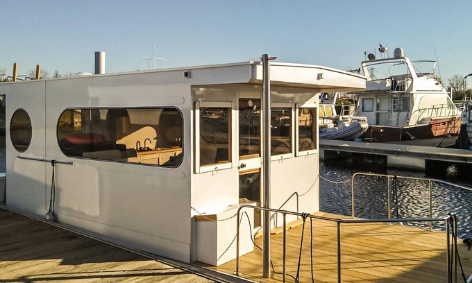 Welcome to this beautiful houseboat, a vacation that you will certainly remember for a long time and that promises you relaxation. Discover the pleasant furnishings and the appealing ambience in a room with a panoramic view of the water and the harbor. Here you will find everything you need to cook, eat, play and relax.