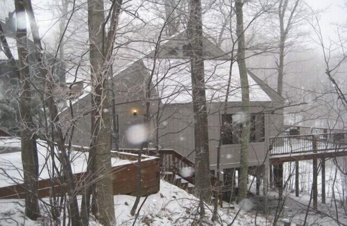 the cottage has large front and rear decks, stairway to slopes, nice furniture and bedding, fully equipped kitchen, sleeps 6 with 1 king, 1 queen, and 2 twin beds..2 flat screen TVs, wireless internet and cable, DVD player, washer/dryer, living room has wood burning fireplace with wood provided, off street parking, great privacy at end of street ...2 minute drive to restaurants and entertainment.