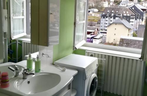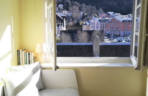 Quiet and renovated residence offering a panoramic view of Cauterets. The accommodation has a separate kitchen area equipped with a hob, coffee maker, fridge, oven, microwave, raclette machine. A large bathroom with shower, towel dryer, washing machine, hair dryer. A sleeping area with a real 140x200 bed and a very comfortable convertible bench. A TV in the living room. Comfort of central heating. A private ski cellar is available at the entrance of the building. Public parking nearby 100m away on a one-way street so uncrowded.