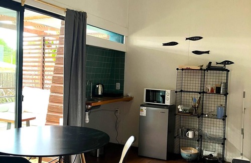 I invite you to enjoy the beautiful DUNA Studio in CASAMAR complex, with a garden view. It is ideal for 2 people and features a kitchen, private bathroom, and its own deck in a shared environment.