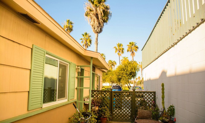 One Block to Ocean and One Block to Bay in Secluded South Mission Beach. Stay here with us to enjoy the beach and bay away from the crowds. Restaurants, Markets, Rentals Amusement park, Indoor Pool and Health Club are within walking distance right across the park. Shops, Restaurants, para sailing, jet skis, Rentals for Bikes, Boogie Boards, Surfboards etc are extremely close. Belmont Park is only a stone throw away as well. Stay in South Mission Beach and Enjoy the perfect picturesque sunsets everyday.