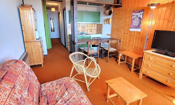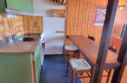 Studio flat 30m2 near the ski slopes and walking trails fitted for 4 persons, located on the ground floor, facing south, stunning view over the valley, cabin with 2 bunks beds, bathroom and separated toilets, large entrance hall, sofa bed for 2 persons, TV. Kitchen area with hobs, oven, fridge and micro-wave. South balcony, confortable and sunny apartment.