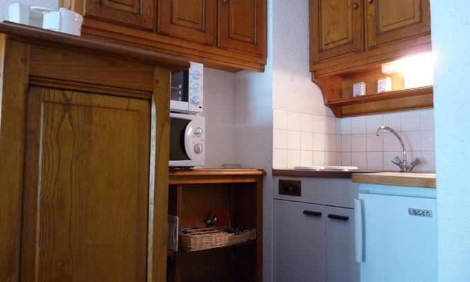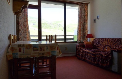 Studio for 4 people, on the 2nd floor of the Pescamou residence, with direct access to the shopping mall and the slopes. Residence with elevator from the mall. Your property is composed of an entrance with a bunk bed, 2 single beds, the living room with fitted kitchenette and dining area, a 2-seater BZ sofa, a bathroom with toilet and a balcony overlooking the slopes.