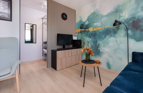This stylish studio apartment is located in a quiet neighborhood of Gdansk. It is about three kilometers from the Old Town - a distance that can be covered by car in just over 10 minutes. At a similar distance is the European Solidarity Center, which can also be reached in 10 minutes by car. The Galeria Morena shopping center is only a 20-minute walk away, and the nearest Ladybug is only 300 meters away. The place is well connected, the nearest Suchanino 01 bus stop is within a few minutes' walk. Hiking enthusiasts will enjoy the Tri-City Landscape Park, which can be reached in fifteen minutes.