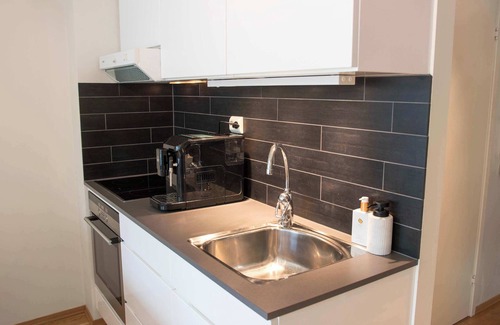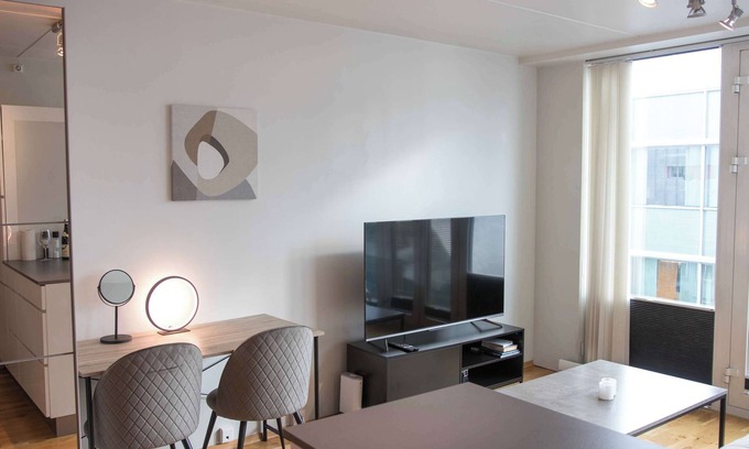 Modern studio apartment in the heart of Tromsø! Ideal for solo travelers or couples, the space features a comfortable sofa bed, fully equipped kitchen, bathroom with a washing machine, and free WiFi. Located within walking distance to restaurants, shops, attractions, and public transport. The building offers an elevator and easy self check-in with an electronic door lock. Quiet yet central – perfect for both leisure and business stays!
