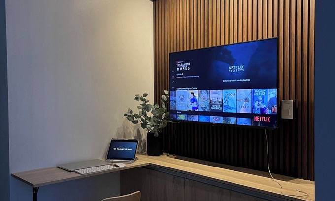 • Common area with a comfortable bed and work desk, also equipped with a smart TV and Netflix access.