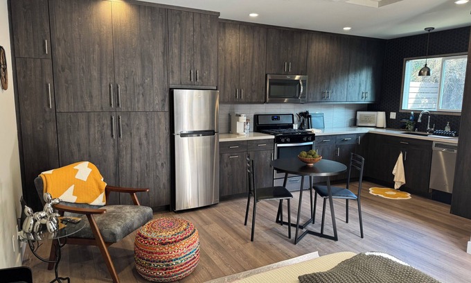 Welcome to this charming studio suite in La Verne. This wonderful space features a cozy living area with a queen bed, full kitchen, bath, laundry, and private parking. It's perfect for a serene getaway. Guests can enjoy the cool AC during warm days and relax in the in the living area after a long day. With amenities like WiFi, smart TV, and just adjacent to a beautiful park, your stay will be convenient and comfortable. We look forward to hosting you at our place.