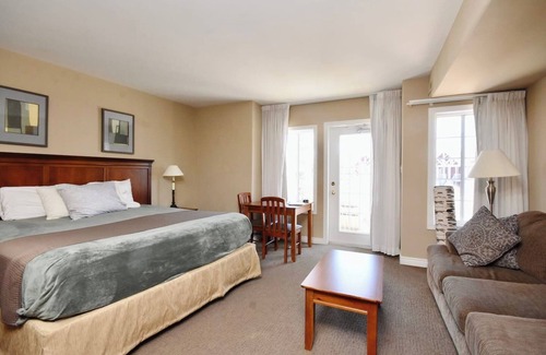 This unique, elegant studio has a style all its own. A spacious suite that is perfect for couples sneaking away to enjoy a few days away from the city. Enjoy a peaceful night in nearby Vetta Nordic Spa, and then snuggle up in your king-sized bed. Warm up your breakfast in the Kitchenette, equipped with a microwave, toaster, kettle, coffee maker, and French press. Access Netflix and Prime, and enjoy Free Wi-Fi!