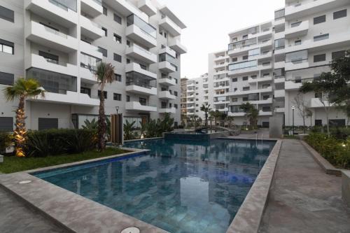 Yes, this Ain Harrouda apartment has a swimming pool. Check the Facility Overview section for details about the pool and other available facilities.