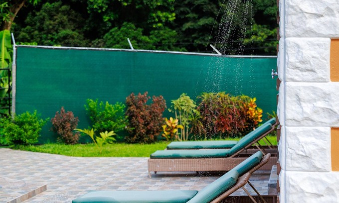 Experience unparalleled luxury in our expansive retreat, where modern sophistication meets breathtaking mountain vistas. Revel in the spacious interiors adorned with chic, contemporary furniture, while surrounding yourself with the serenity of lush greenery. Your stay promises a harmonious blend of elegance and nature's beauty.