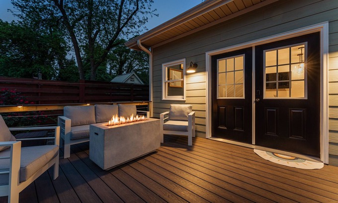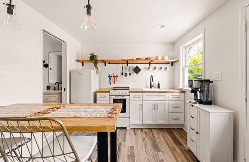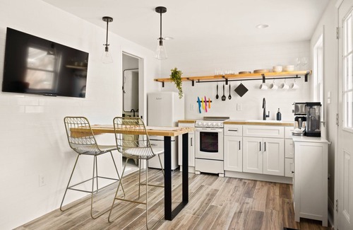 Stay steps away from downtown in our charming 440 square-foot tiny home. Thoughtfully designed with a bohemian flair, this urban retreat boasts a stylish loft bedroom, a well-appointed kitchen, and a relaxing living area. Step outside to the private outdoor space, perfect for enjoying a morning coffee or evening cocktails with friends. A perfect place to unwind after a day of shopping, dining, and sightseeing. Ideal for couples or solo travelers, this tiny home offers an unforgettable stay.
