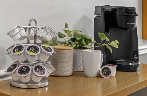 There is a little coffee bar by the dining room table for some more counter space if needed.