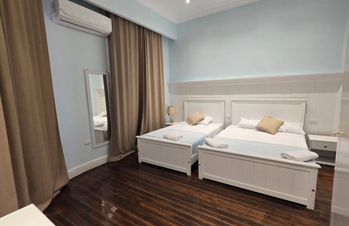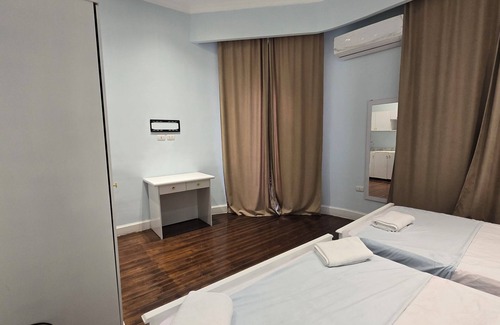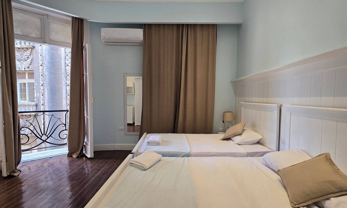 Experience boutique hospitality in Downtown Cairo! Our cozy studio features 1 king bed, 1 queen bed, 2 small balconies, kitchenette, TV, AC, toaster, microwave, stove, and modern bathroom. Enjoy free breakfast, daily housekeeping, and friendly staff.
