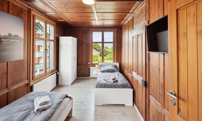 Welcome to our furnished apartment with 2 rooms, 4 single beds, and stunning mountain views. The modern kitchen, nostalgic flair, and Smart TVs in each room provide comfort and entertainment. Perfect for vacationers, workers, and technicians who appreciate comfortable beds and a cozy atmosphere. Feel at home in this inviting apartment.