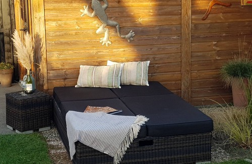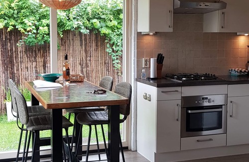 Around the cottage is a spacious fenced garden with 1 private parking space. There is plenty of privacy, sun and shade here. The place to relax on balmy evenings. Fire pit, a good glass of wine and a nice breakfast at the picnic table the next morning.