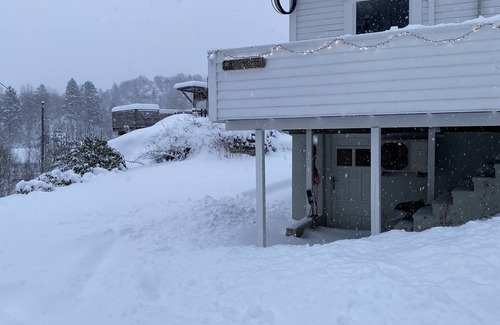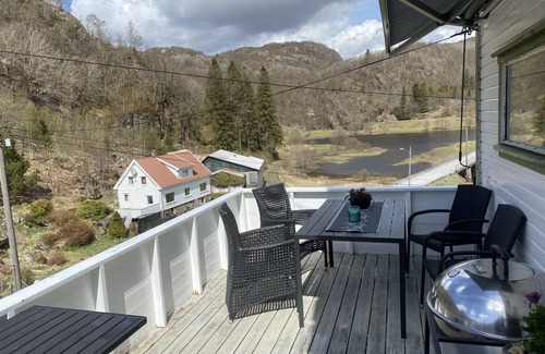 Charming holiday home that offers a great location with beautiful views of a beautiful natural landscape. The holiday home is located undisturbed on a hill, which makes for a quiet and peaceful holiday in beautiful surroundings. The area can also offer good fishing and swimming opportunities as well as great hiking experiences. This is a place with peace and quiet, and with opportunities to visit the best of both the west and south of the country during the holidays. TV and Internet are available.