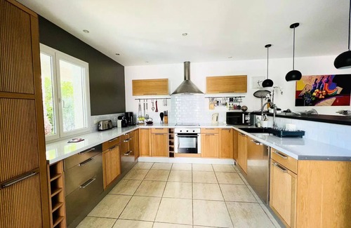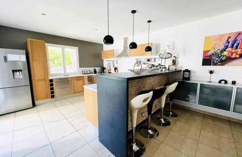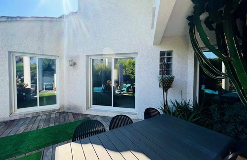 Accommodation: My highlights: air conditioning, 5 minutes from the beaches and 20 minutes from Montpellier, quiet residential area, secured private swimming pool, wooded garden, wifi, south exposure,...Ideal for a family getaway to the sea, this beautiful villa of about 165 m2, with careful decoration, can accommodate up to 8 people. It benefits from all the comfort to ensure you a stay dedicated to relaxation. On a contemporary garden of 400m2, it has a swimming pool (secured by an electric roller shutter), from 1m10 to 1m45. The kitchen is equipped with everything you need to prepare delicious meals and includes an oven, microwave, coffee maker, American fridge/freezer and dishwasher. You can also use the barbecue. The spacious dining room can accommodate up to 8 guests. A flat-screen TV and reversible air conditioning are available. This villa in a very residential area also has 3 beautiful air-conditioned rooms (with double bed 160cm) and a cabin with 2 bunk beds (not air-conditioned), the upper bed being not suitable for children under 6 years (Article 6 of Decree No. 95-949 of 25 August 1995). It has many storage spaces. There is a bathroom on the ground floor and a bathroom upstairs. Separate toilets are present on both levels. You will of course enjoy the beautiful garden, its swimming pool with its private terrace which is equipped with a garden furniture.Wash Linen is available in the house. Pets are not allowed in this house. Swimming pool dimensions: 7m x 3,50m - depth: 1m10 to 1m45Please note that the price does not include the rental of sheets and towels and that the cleaning of the end of stay is at your expense.A deposit of 500€ for the cleaning and 2000€ for the villa will be requested upon arrival (sums not collected or debited, as a guarantee).Free parking spaces are available right in front of the villa. You can enjoy a wide range of water sports, such as wake board, windsurfing and water skiing, just 2 steps from the villa. At less than 2 minutes, golf enthusiasts can enjoy the golf course with 2 18-hole courses and 1 6-hole course, for which you will benefit from 20% discount on green fees on presentation of your rental contract. In addition, you will find local shops, restaurants and bars in the port area. In the heart of a privileged setting in a relaxing atmosphere, you will discover an ideal space for a successful holiday. La Grande Motte offers you the sweetness of the farniente on the sandy beach nearby, or in the middle of a remarkable flora. Athletes of all kinds will enjoy the offer of activities on site or nearby: swimming, water sports, horse riding in the Camargue, canoeing. History enthusiasts will discover Arles and the Saintes-Maries-de-la-Mer, with their rich past. The warm Languedoc country will take you in its ferias and its many leisure parks. Within the Petite Camargue, the surprising Languedoc coast and the warm hinterland are waiting for you.All trade and services are nearby. Health: Pharmacies, dentists, nurses, physiotherapists. Hospitals and clinics in Montpellier. Food: Superette- grocery store at 5 minutes, Supermarkets, bakeries, restaurants, markets. Others: Service stations, bar-tobacco, post office, hairdressers, and many shops on the seafront. PASS LOISIRS is a realPassport Privilege forleisure and sports activitiesThe Big Motte!Your host offers it to you!From the first activity purchased, you get discounts on land and water activities. Valid for the whole family (5 people max) during your stay.List of activities: https://www.lagrandemotte.com/pass-loisirs-liste/
