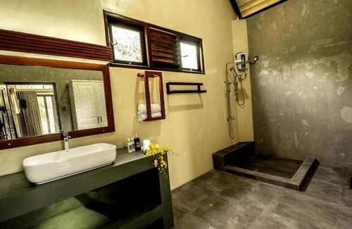 This delightful 1-bedroom villa is perfect for your escape to Pitigala. With its charming and cozy atmosphere, it's the ideal retreat for guests seeking a relaxing getaway. The bedroom features a comfortable king bed, ensuring a restful night's sleep. You'll find all the necessary amenities like heating, a hair dryer, an iron, WiFi, AC, and a washing machine. The bathroom is equipped with a hair dryer and a refreshing shower. We think our place will help you experience everything Pitigala has to offer.