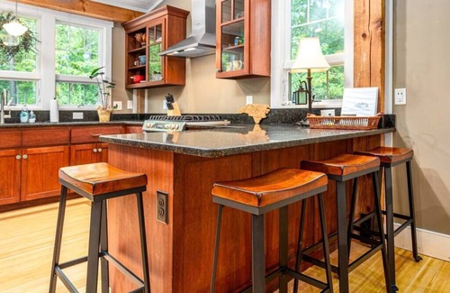 The outdoor firepit and large patio are perfect for resting or entertaining as you enjoy the outdoors. There is also a headed outdoor dining area. The home is on the Bynam Loop Bike trail and is only 3 mins from a Kayaking put-in on the Haw River.